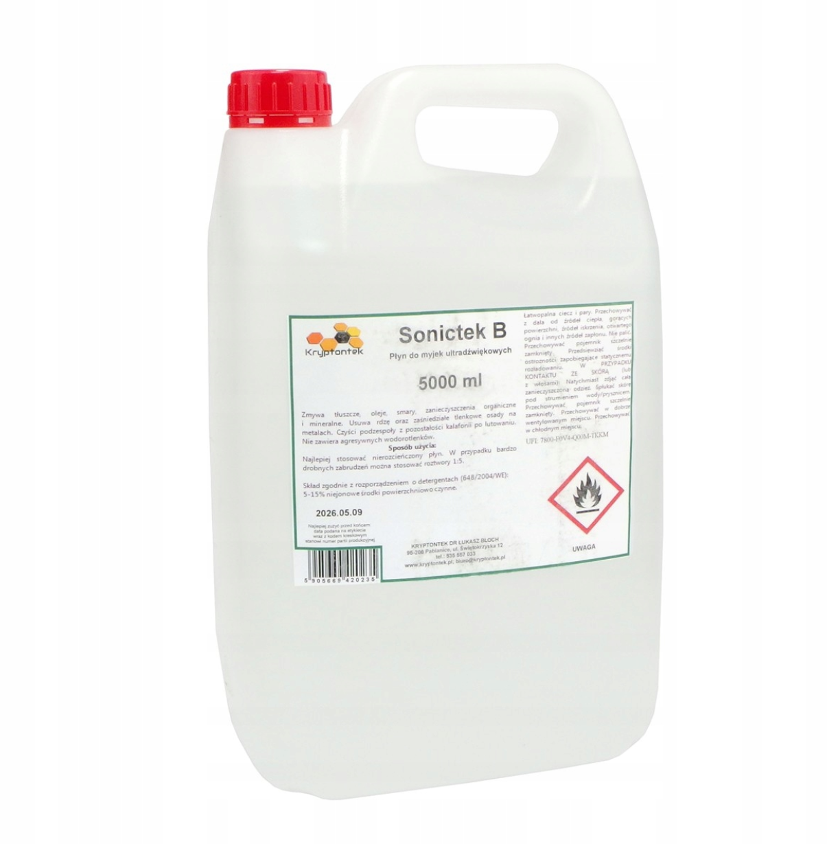 SONICTEK B je čisticí roztok, který je dodáván v balení o objemu 5000 ml, což představuje 5 litrů.