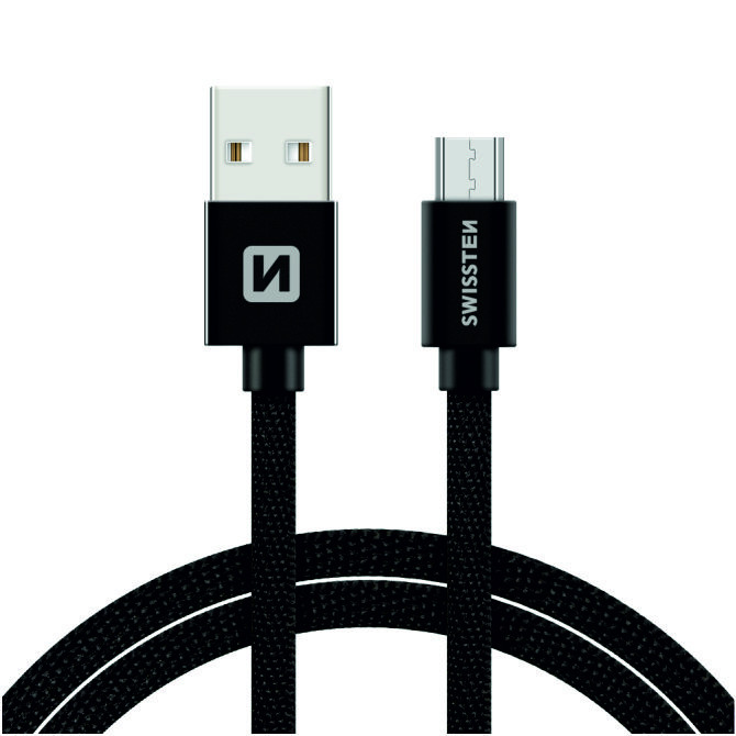 Swissten datový kabel USB opletový micro USB 1.2m černý